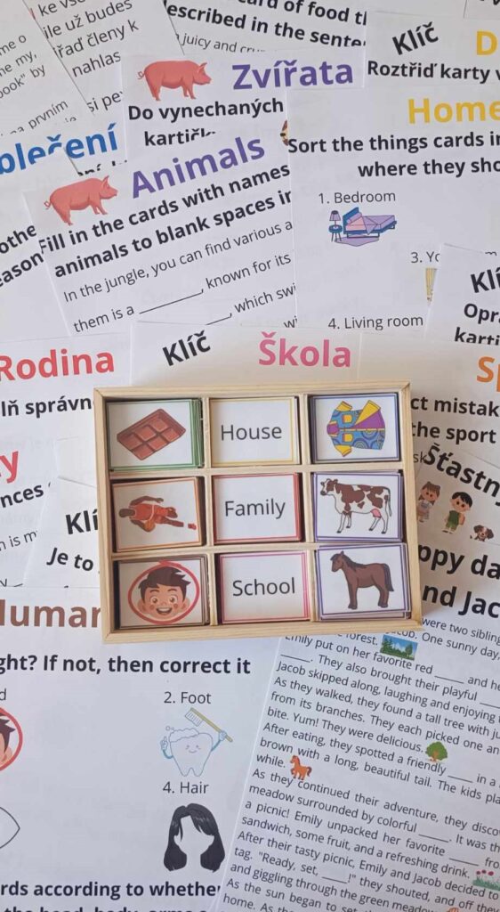 • kartičky se slabikami, slovy, slovíčky, obrázky