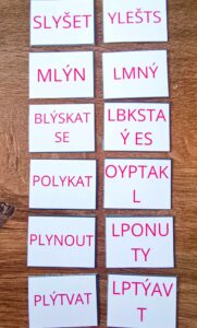 Autorská krabička Vyjmenovaná slova hravě, ať nemáme zmatek v hlavě, která obsahuje kromě kartiček s vyjmenovanými slovy, přesmyčkami a obrázky také diktáty, běhací diktáty, pracovní listy, čtyřsměrky, popletené doplňovačky a další, stojí stejně jako ostatní autorské krabičky 1100 Kč.