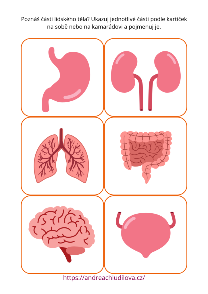 Dokáže váš předškoláček pojmenovat části lidského těla a ukázat je na sobě? Ví něco o vnitřních orgánech?